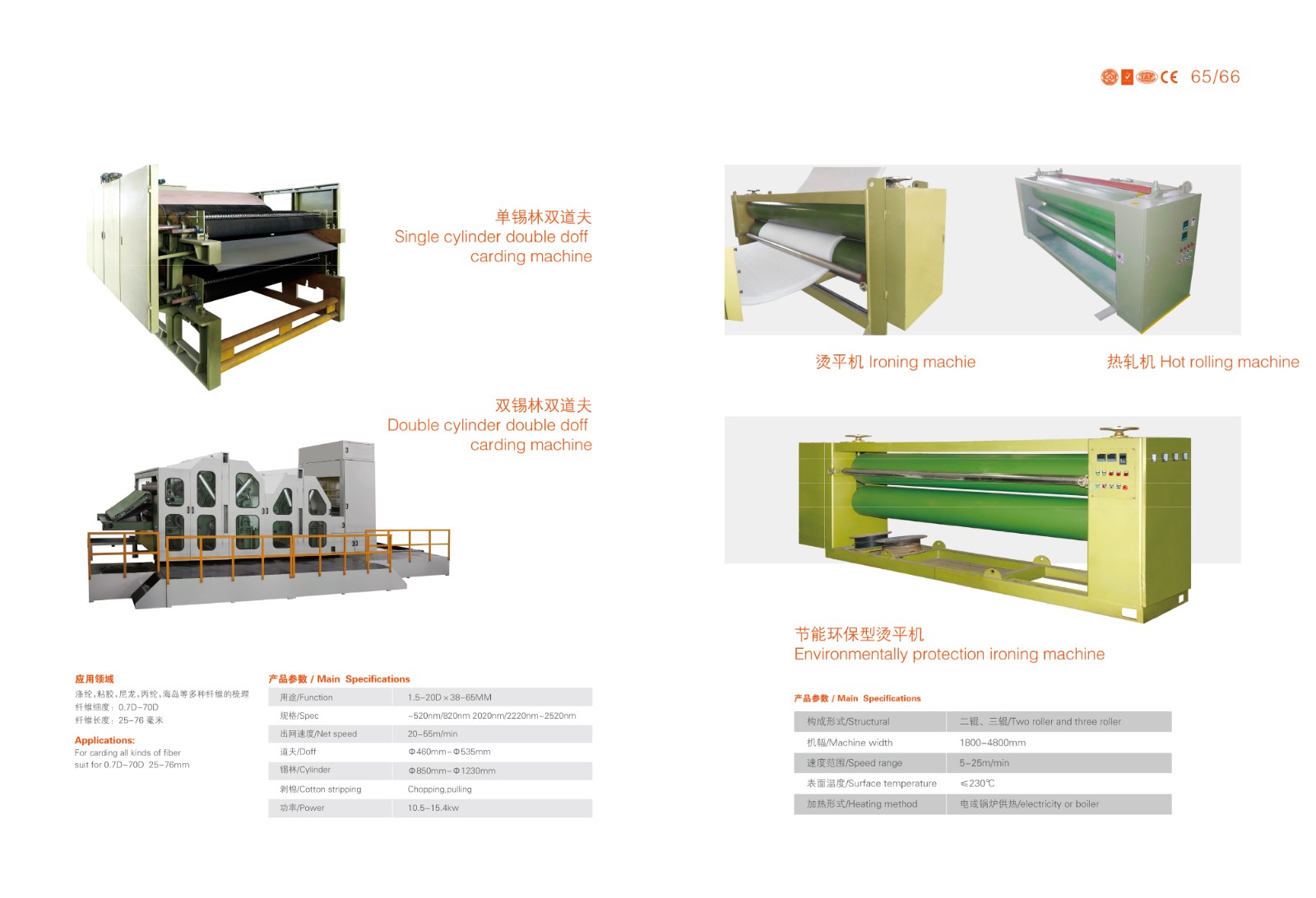 1)機器功能:對無膠棉、噴膠棉表面進行燙光,使表面平整。