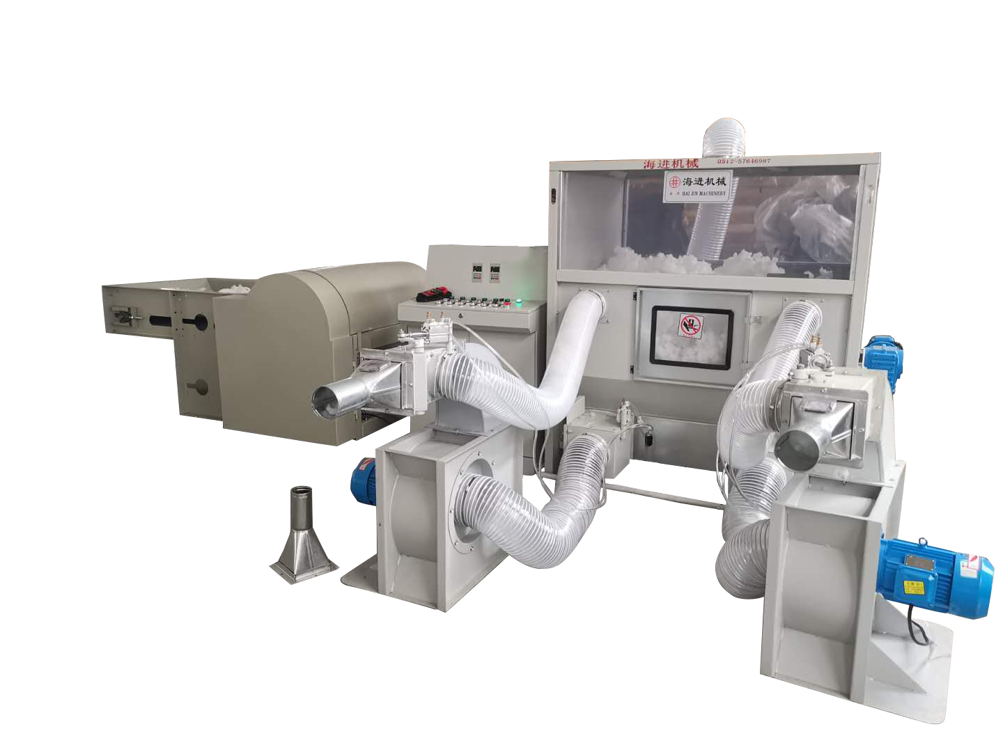 沙發充棉機是采用高壓風機汲取羽絨、化纖等填充物,灌充羽絨服、羽絨被等被服制品的機械。...